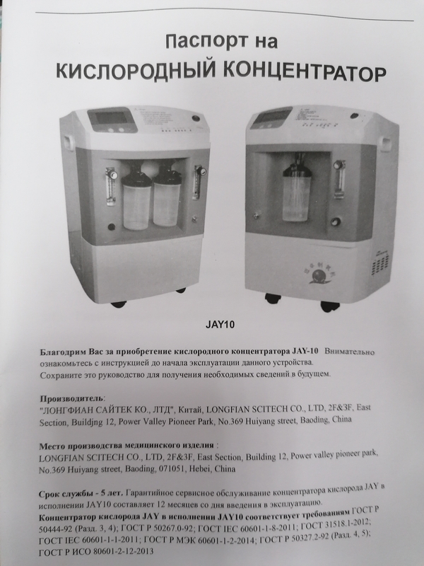 Концентратор кислорода 10 литров JAY-10 с 1 выходом